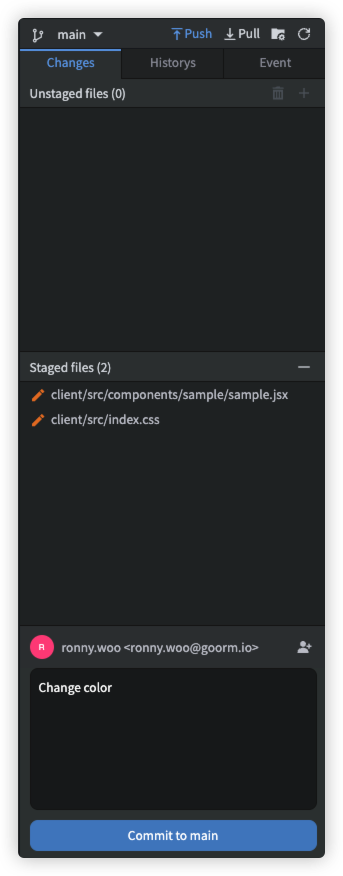If there are commits that have not been pushed, the Push button on the top right of the [Source Code Management] layout is activated.