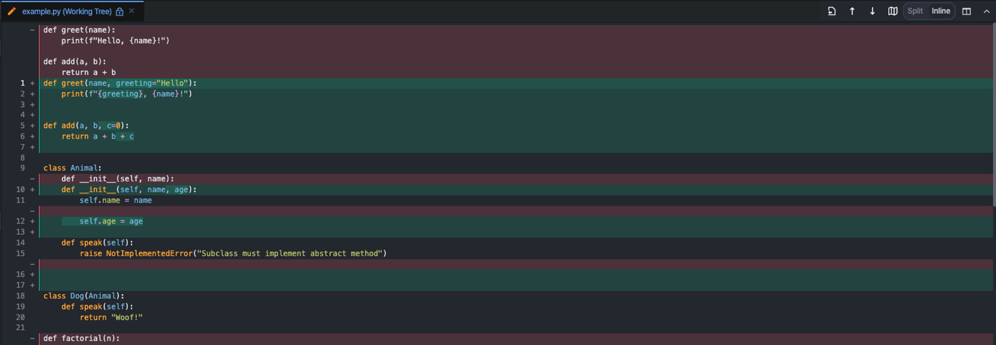 You can compare the source code before the change (left) and the source code after the change (right).