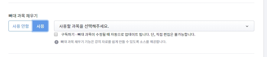 (단, 뼈대 강좌 채우기 사용 시 "구독하기"를 체크한 강좌는 뼈대 강좌의 원본이 수정될 때 그대로 반영됩니다.)
