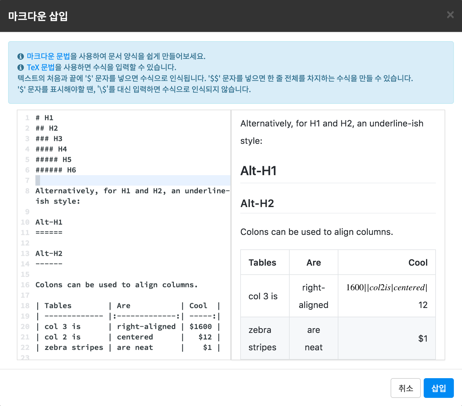선택하여 삽입할 수 있습니다.
