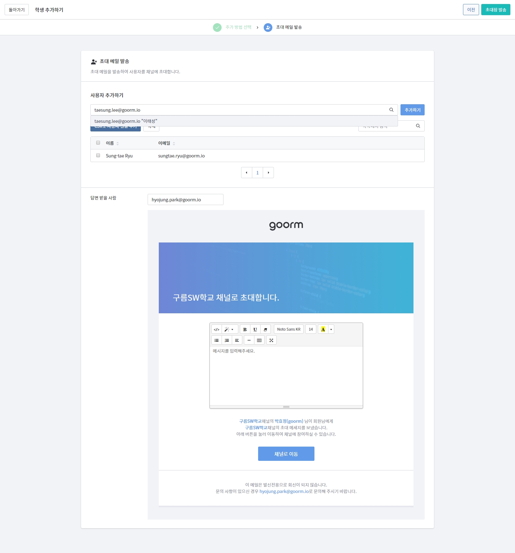 초대받는 분의 가입 여부와 상관없이 이메일로 초대장이 발송됩니다.